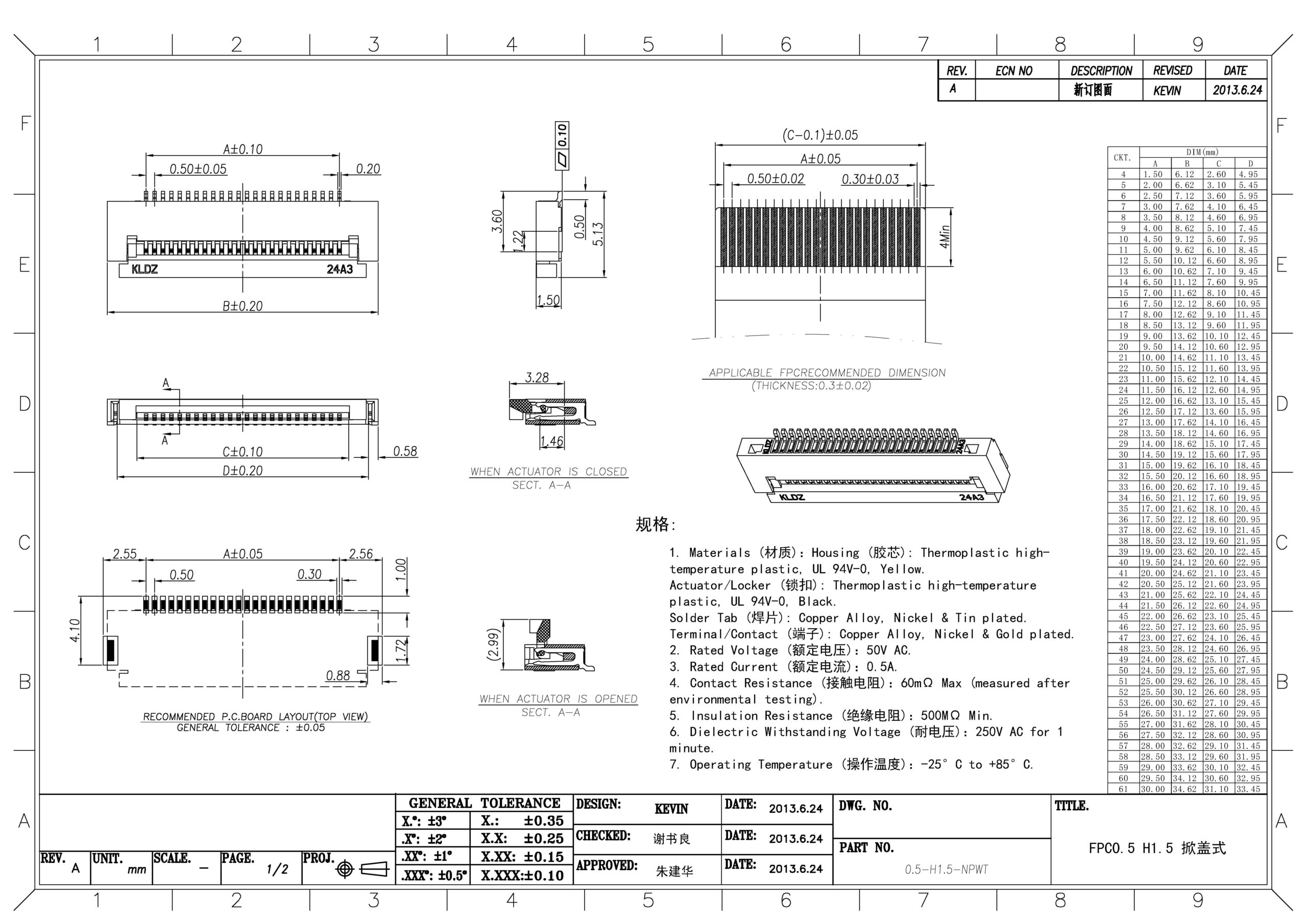 # 0.5mm Pitch FPC Board-Mount SMT ZIF Flip-Top Connector (H1.5 Height) This high-quality FPC (Flexible Printed Circuit) connector is designed for surface mount (SMT) board-mount applications, featuring a 0.5mm pitch and ZIF (Zero Insertion Force) flip-top/lid-open structure. ## Key Specifications: – **Pitch**: 0.5mm – **Mount Type**: SMT (Surface Mount Technology), Board-Mount – **Structure**: ZIF Flip-Top / Lid-Open – **Height**: H1.5 – **Application**: FPC/PCB connection, consumer electronics, automotive electronics, industrial control, etc. – **Material**: High-temperature resistant plastic + gold-plated contacts, ensuring stable signal transmission and long service life.