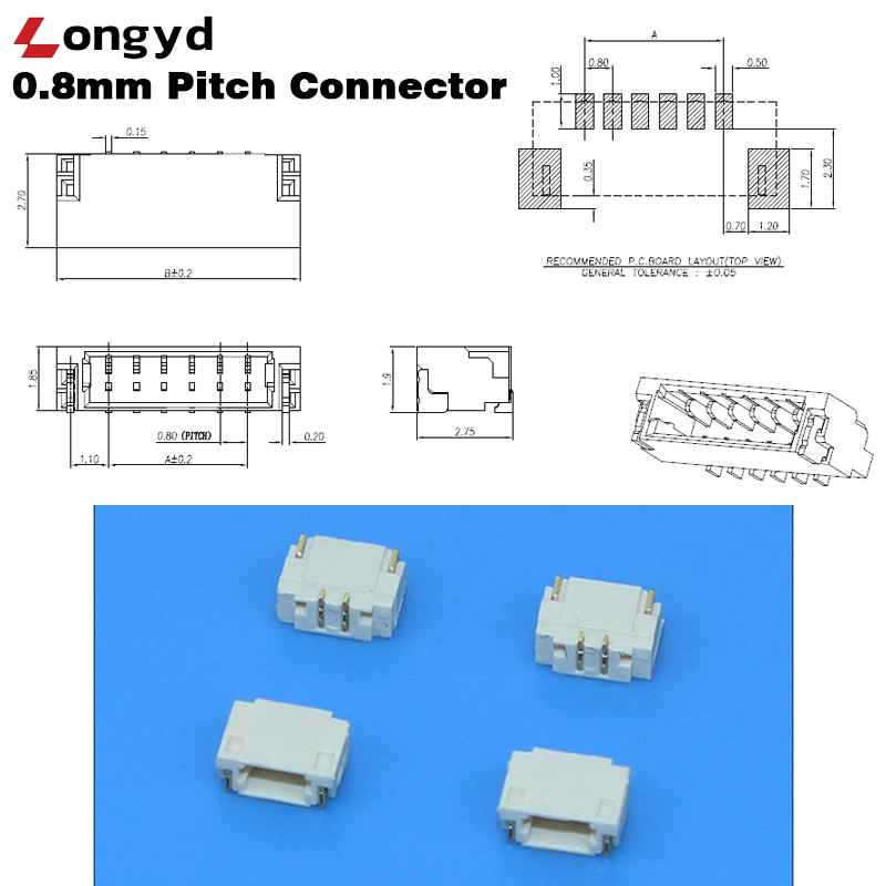 • Pitch: 0.8mm ultra-fine pitch for space-saving PCB designs.