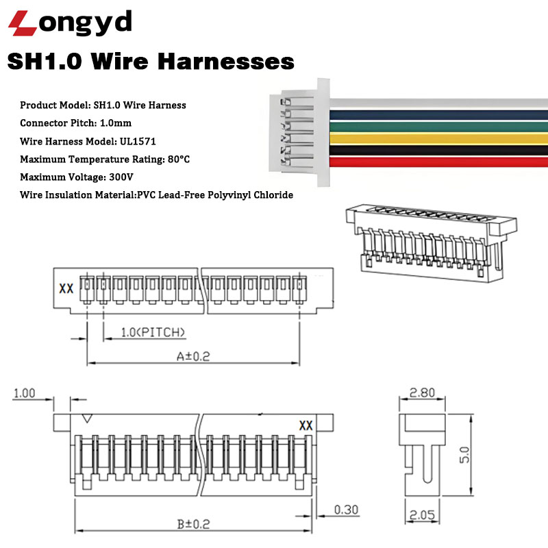 The SH1.0 Wire Harness is a compact, high-precision wire assembly designed for applications requiring reliable signal and power transmission in tight spaces. With a 1.0mm connector pitch, this harness is ideal for consumer electronics, industrial control systems, medical devices, and new energy equipment.